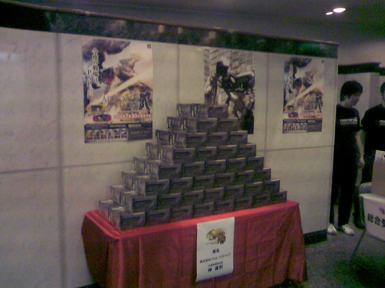 LEGS ZLF-A3/CARM AC2 LEGS LN-D-8000R ACPP BOOSTER B-PT000 ACMOA EXTENSION BEX-AA00 AC2AA ARM UNIT WG-RFM118 ACPP ARM UNIT WG-XP1000 AC ARM UNIT ZWG-AR/K AC2 ARM UNIT KARASAWA-MK2 AC2 ■前作からの復刻追加パーツ パーツ部位 パーツ名(過去シリーズ収録時) 収録シリーズ HEAD HD-H10 ACMOA ARMS ZAN-303/S AC2AA ARMS EAW-S604 AC2 LEGS ELN-070 AC2AA LEGS ZLR-ZIO/MATRIX AC2 RADIATOR RBG-CLX5000 AC2 BACK UNIT ZWC-XP02/QL AC2AA ARM UNIT EWG-HC-GN210 AC2AA ARM UNIT ZWG-HG/111 AC2 ARM UNIT ZLS-T/100 AC2AA ざっとこんなもんですかね 続いてAC3Pの全国決勝大会に行ってきました。 白熱したブレード戦や地道な削り合い、優勝を決した熱暴走。最後の最後まで熱い戦いを見させていただきました。色々あり過ぎて言葉に出来ません(これが物書きを半端に目指す者の発言だろうか?) まぁ、バトルに関してのレポートは他の素晴らしい方々がやってくれていると思うので、物凄くどうでもいい話をしましょうか。 アリーヤ川手さんの顔が凄かった。顔が本当に03-AALIYAHなんですよ、どうやって前を見てるのか分かりません。 戦闘中なんて複眼がオレンジ色だった所為でロックオンカーソルが見えなかったとかw 実用性は皆無でしたが03-AALIYAH頭は格好良かったです、その内グリントさんとか出てきそうですよね?誰か作ってくれ!! ゲスト参戦していたJさんのブレードの扱いが素晴らしかった。まさか決勝トーナメントOB切りをバシバシ決めてくれる方がいるとは思いもしなかった。しかも初戦突破しちゃうし とは言え2戦目でブレードに刻まれて負けちゃいましたが凄かった。 そしてこれ↓ お昼の軽食として出た「アーマード・コア寿司」、何処がじゃ!!と突っ込みたいところですがジャンケンで勝った人はナインボール寿司を貰ってました。写真の右端のがそれです・・・がイクラの数が間違ってて10ボールになってましたとさ、ちなみにこれは私のではなくその日知り合った方のです。名前聞き忘れた!! フリートーナメントでは初戦で負けてしまいましたが楽しかったです、なんたって初の対人戦でしたから 機体が全部アデューな方がいたのですがよく戦えるね、とか思ってたら初戦敗退でした、残念!! そして参加者全員にプレゼントされたポーチ、クリアファイル、カスタムジャケットは本家のHPで確認できるからあえて語る必要はありませんね ↓ まさかこんな物まで貰えるとは思いもしなかった、思わず叫んでしまいましたよ、近くにいた人に申し訳ない位喜んでました。だってこれ数量限定生産だったはずでしょ?何でこんなにいっぱい有るのさ?! さらに↓をご覧下さい C03-HELIOS ウィクトーリアverが2010年2月に発売予定だそうです。ちなみに隣に居るのは左がアンサング、右がテルスとオーギル(札を見るとTEとHOの立ち居地が間違っていることが分かる) AC3SLの体験コーナーもありました、勿論やりましたよSAMURAI-2は最高の武器腕です。アレに勝る武器腕は無い、そう断言できます。 拡張兵装(エクステンション)のENシールドの消費ENも軽減されてましたし俺の時代がやってきたって感じです(対エクレール用のブレード機体が作れる) とまぁこんな感じで楽しい週末を過ごすことが出来ました。改めてフロムの素晴らしさを実感すると共になかなか開かない20thアニバーサリーボックス(開けるのに10分くらいかかった)に感激しつつ今回の更新はここで終わりとなります 仕事しろとか言われそうだが ノシ